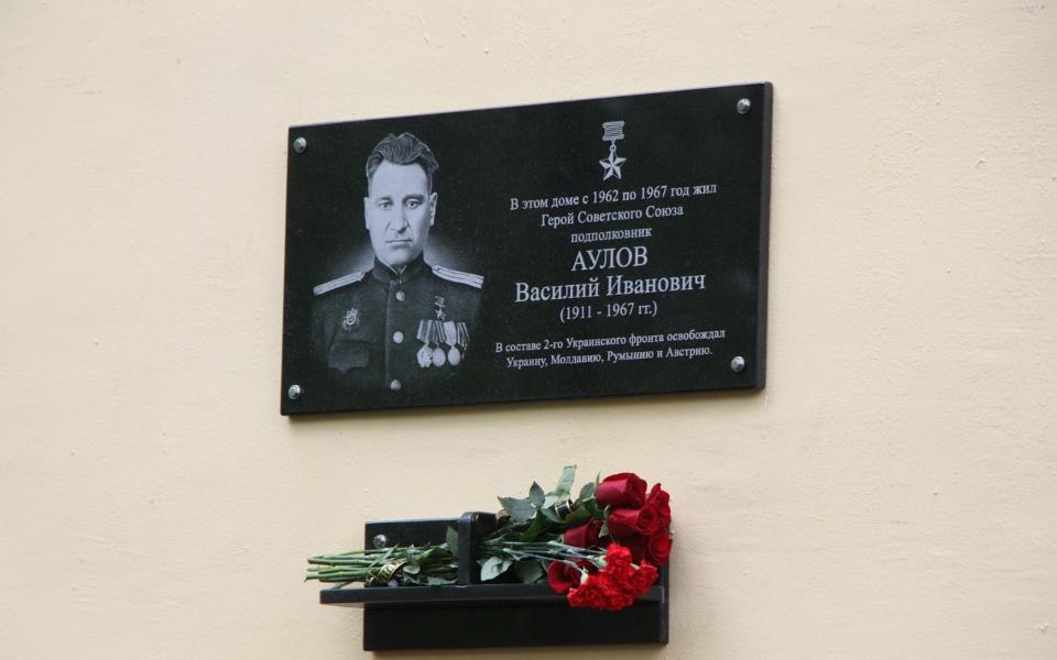 Мемориальную доску установили в 2010 году, в честь 80-летия Победы её реконструировали. Изначально табличку установили по инициативе и на средства Государственного Рязанского приборного завода. Там Василий Аулов проработал 10 лет.