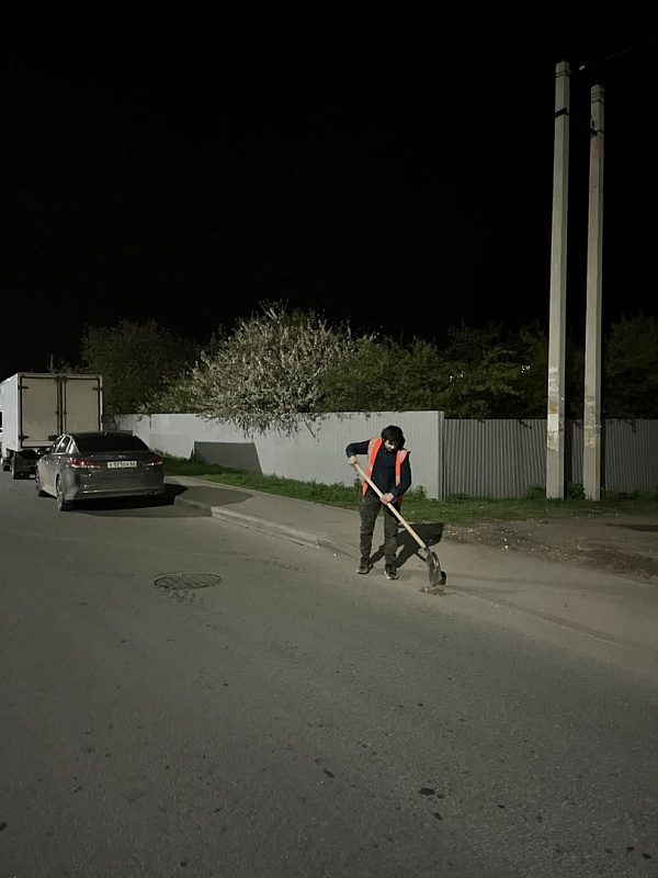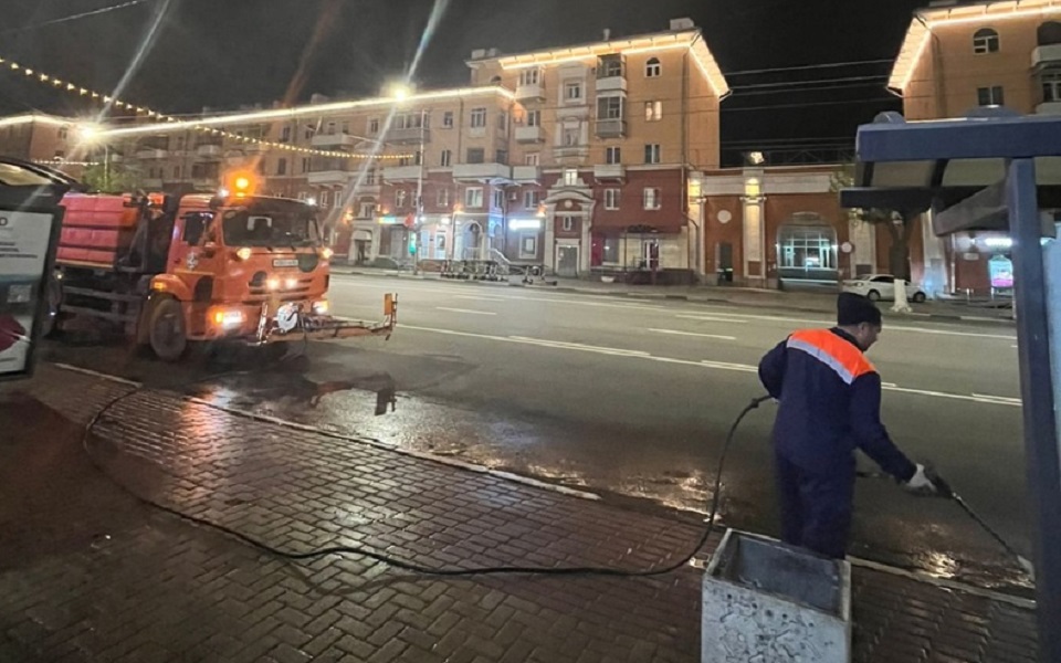 В ночь на 5 мая в областном центре убирали дороги и тротуары. Рабочие сгребали наносы грунта у обочин, красили бордюры.