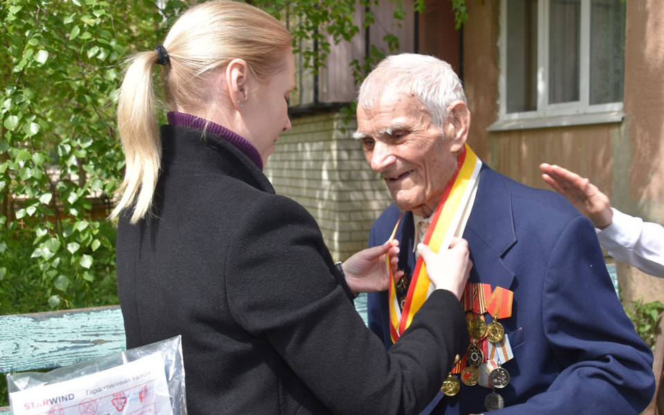 В качестве памятного подарка ветерану вручили часы, наручные и настенные, а также телевизор.