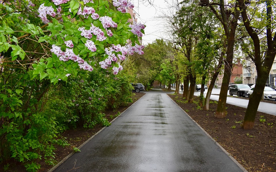 Длина отремонтированного участка – 302 метра. Здесь полностью сменили асфальт, отремонтировали тротуары, установили бордюры, благоустроили зеленую зону. В планах – монтаж дорожных знаков и нанесение разметки.
