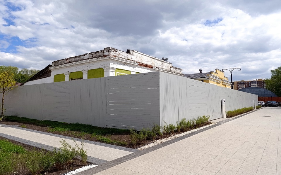 На территории Рязанской ВДНХ появился забор, ограждающий два павильона.