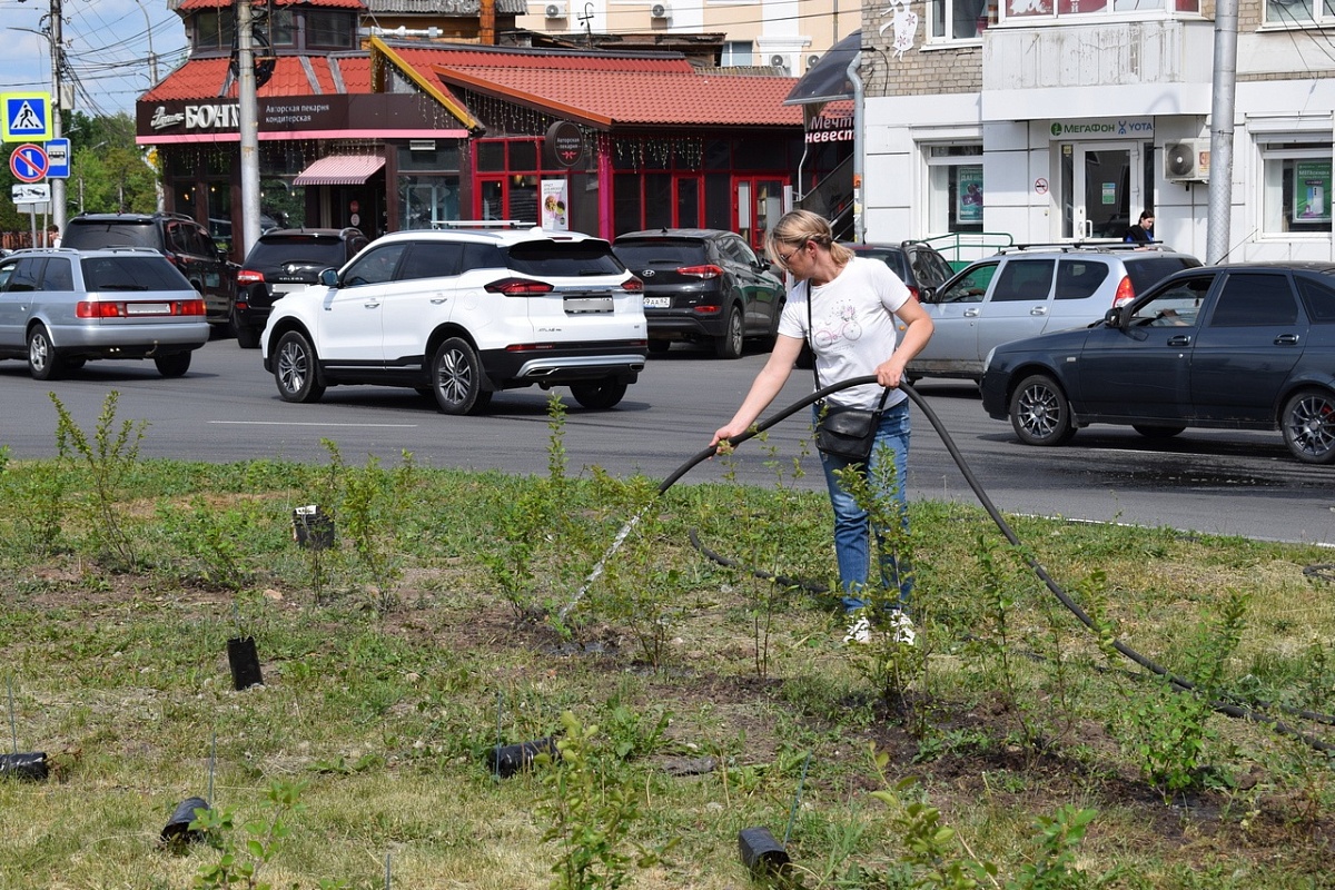 Очередные работы по высадке саженцев и рассады прошли на Московском шоссе и на площади Свободы. Так, в центре площади Свободы будут цвести 450 кустарников. Это можжевельник и кизильник, белая сирень и белые розы.