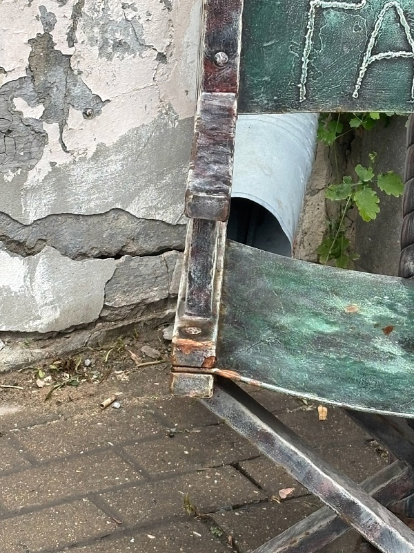 Объект установлен в центре города, на Соборной улице. Металлическое кресло ржавеет, а цитату на табличке уже сложно прочитать. "И говорить-то стыдно", - написали пользователи соцсетей.