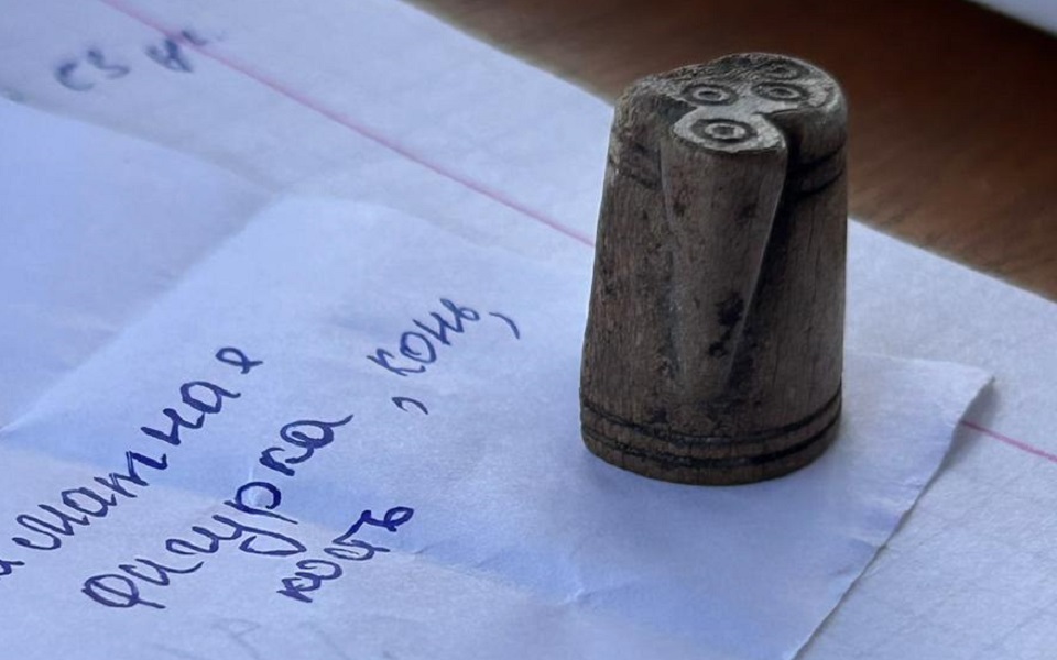 В первые же дни экспедиции они нашли шахматную фигуру XIV-XV изготовления. Она сделана из кости и украшена орнаментами.
