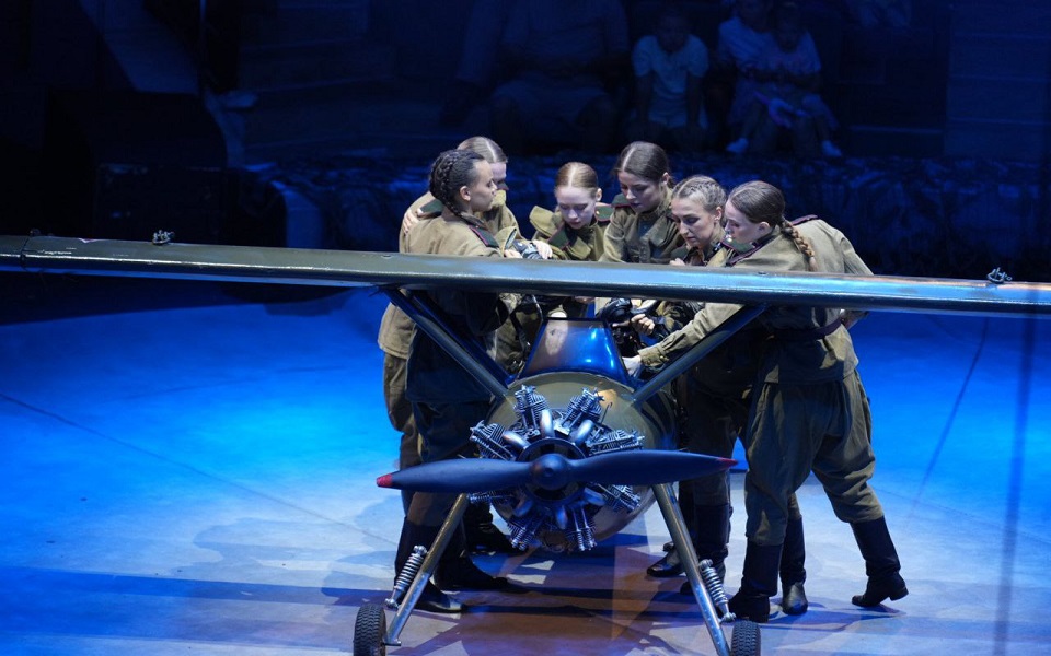 Спектакль объединил великие страницы истории нашей страны и лучшие жанры циркового искусства. Большое внимание создатели программы уделили исторической основе – использован мотоцикл "УРАЛ М-72"; реквизиторы сделали модель самолета на основе У-2 из полка "Ночные ведьмы".