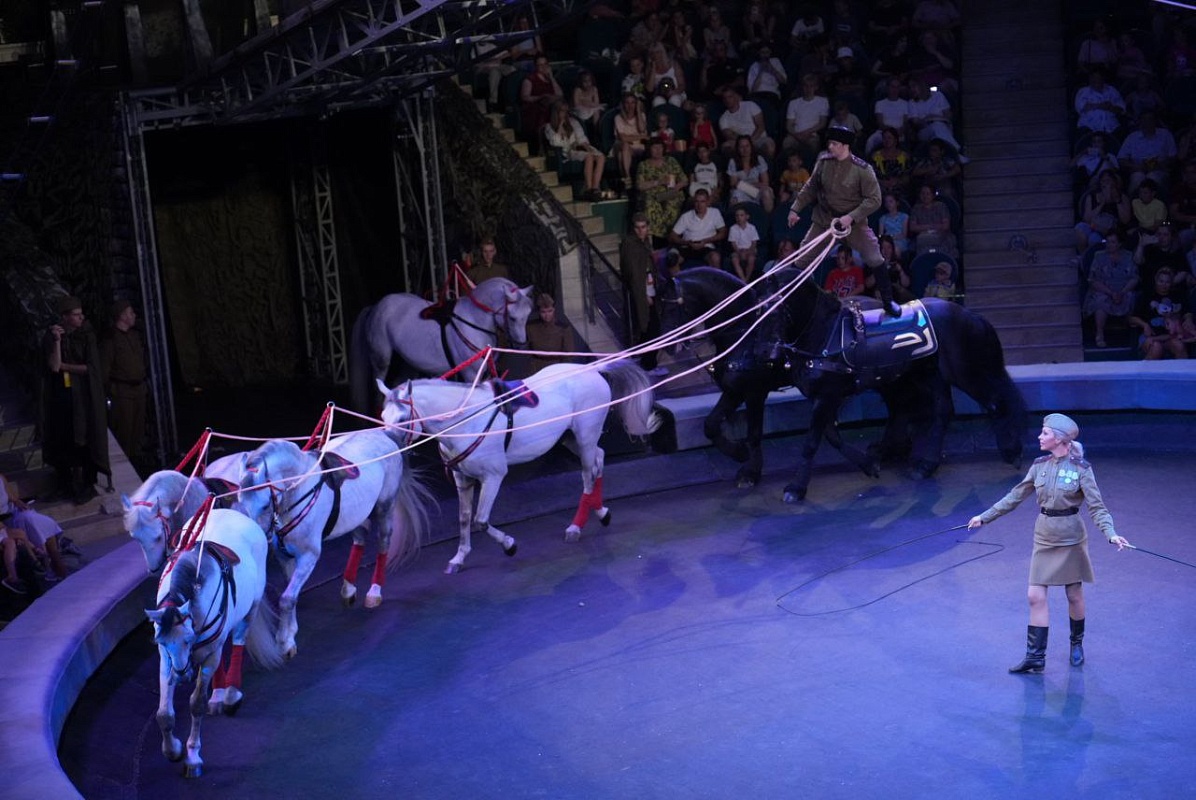 Зрители смогли увидеть полные эмоций выступления воздушных гимнастов и акробатов. Яркое впечатление произвел легендарный конный аттракцион имени народного артиста России Тамерлана Нугзарова – на манеже одновременно задействовано 19 лошадей. Дети оценили номера с дрессированными собаками, медведями и морскими львами.