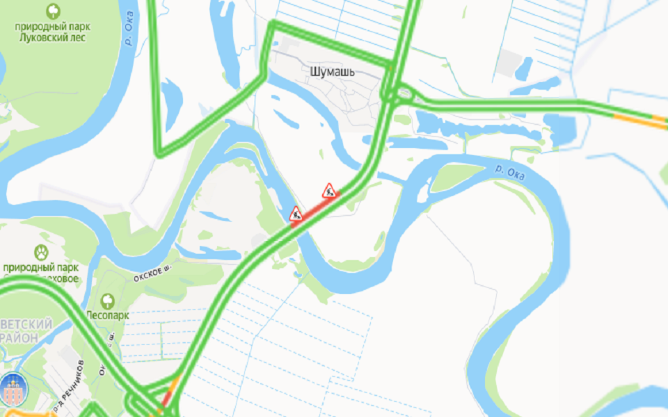 Вечером 29 июля движение на мосту перекрывали в одном из направлений, пропуская весь поток машин по оставшейся части дороги. Днем в среду пробка на пути в город начинается у Шумаши - хотя трафик еще не такой интенсивный, как по вечерам или в выходные.