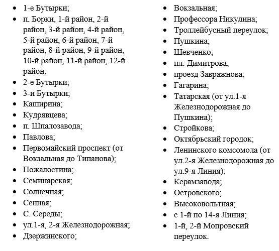 Ресурс будет ограничен с 22:00 31 июля и до 6:00 1 августа на следующих улицах: