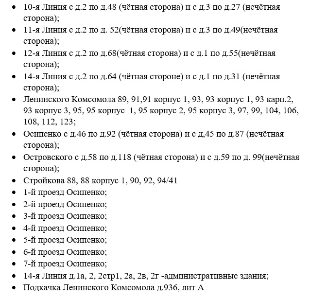 Холодной воды не будет до 17:00 на улице Зубковой в домах №№ 29 корпус 1, 30, 30 корпус 2, 30 корпус 3, 30в, 30 корпус 2, 31, 31 корпус 1, 31 корпус 2, 31а, 33, 30А; на улице Новосёлов в домах №№ 50, 50 корпус 1, 50 корпус 2, 54, 54 корпус 1, 54 корпус 2, 56 корпус 1, 58, 58 корпус 1, 58 корпус 2, 58 корпус 3, 58 корпус 4, 58 корпус 5, 58 корпус 6, 60, 56, 50к 3; Народный бульвар в домах №№ 12, 12 корпус 1, 14, 15, 16.