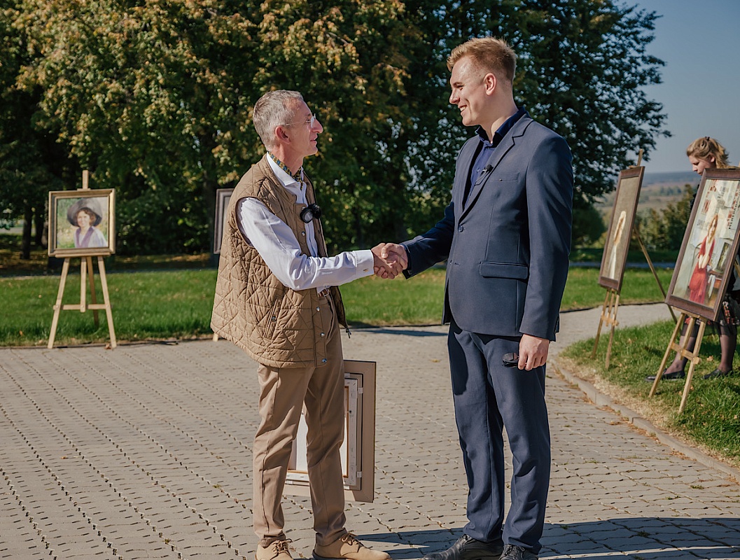 Картины директору музея-заповедника Вячеславу Журавлёву передал управляющий директор ГК «Зелёный сад - наш дом» Андрей Оришкевич.
