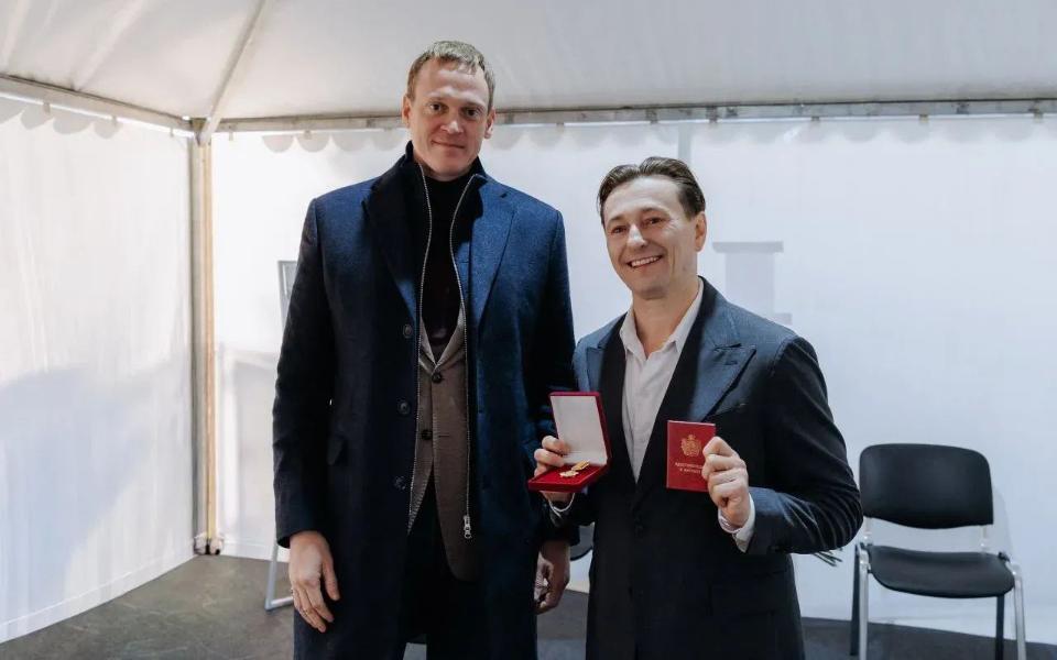 После спектакля губернатор вручил Сергею Безрукову почётный знак.