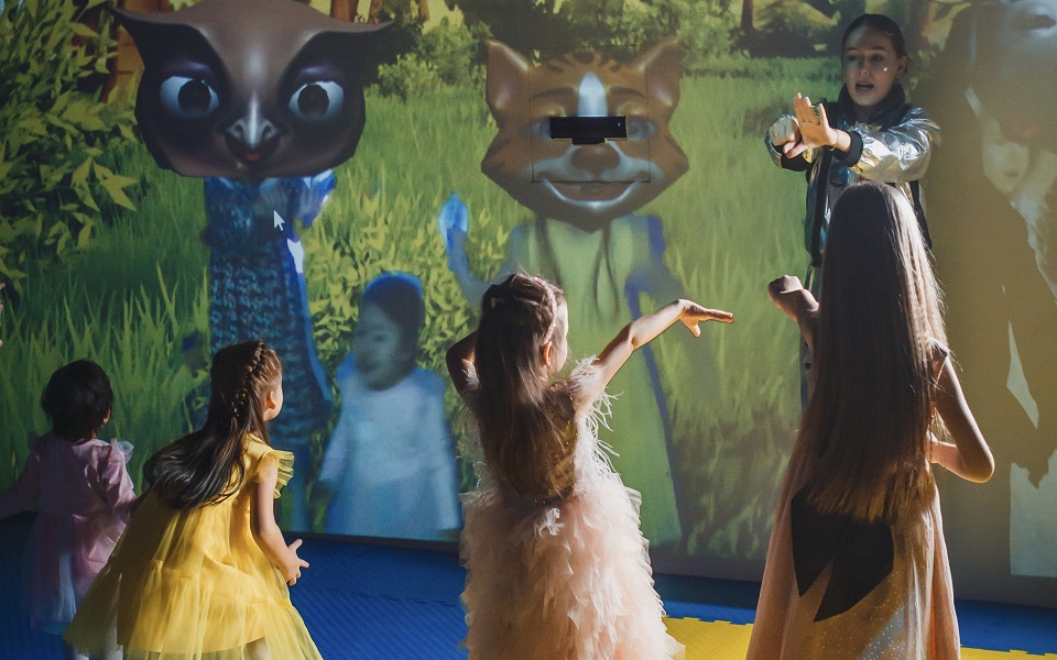 • сенсорный пол с интерактивными играми: футбол, классики, игры по мотивам любимых мультфильмов и другие;