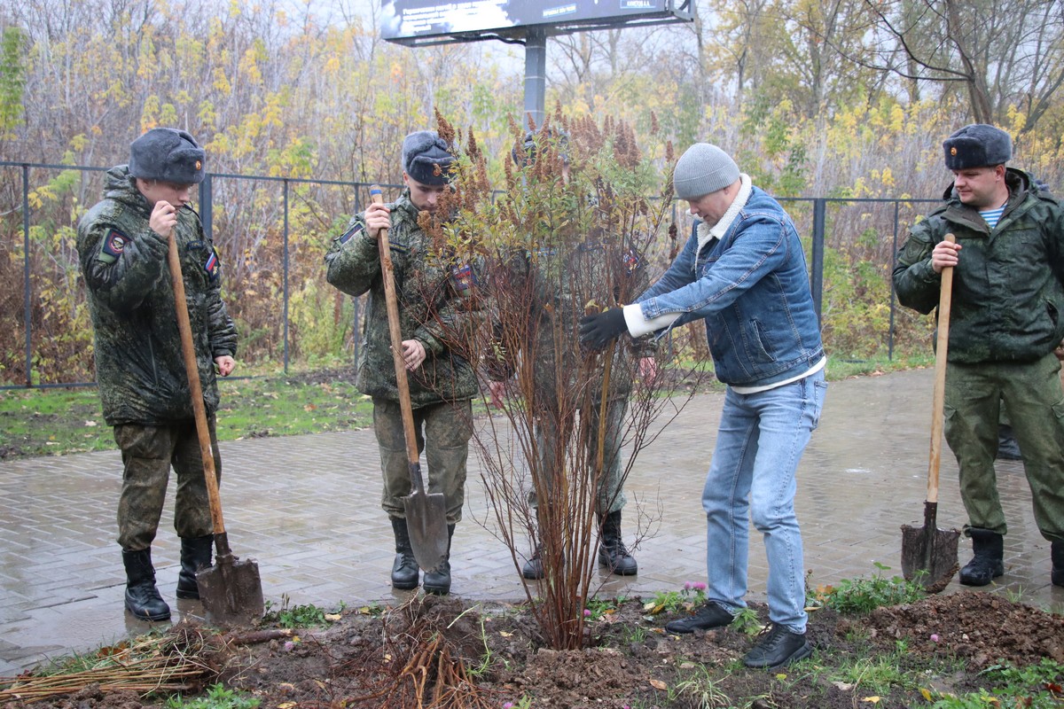 Вместе с военнослужащими 137-го десантного полка и представителями общественных организаций они высадили кусты спиреи в Гвардейском сквере.