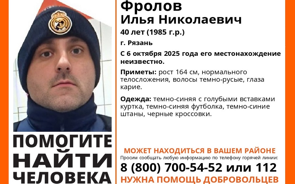 Пропавший - Илья Николаевич Фролов, ему сорок лет.