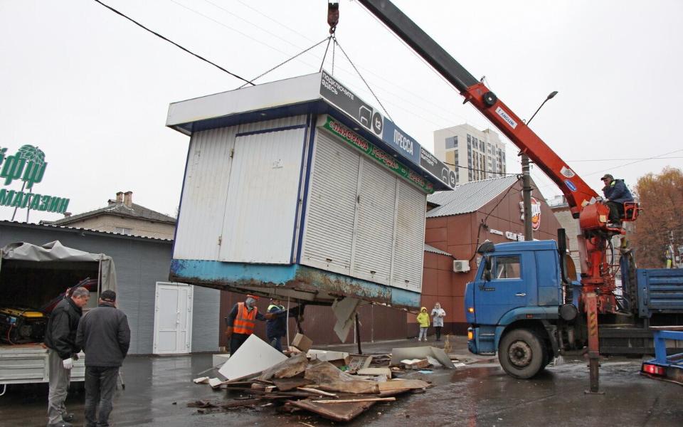 Так, с площади Попова увезли ларёк с названием «Пресса». Это связано с расторжением договора на размещение с собственником.