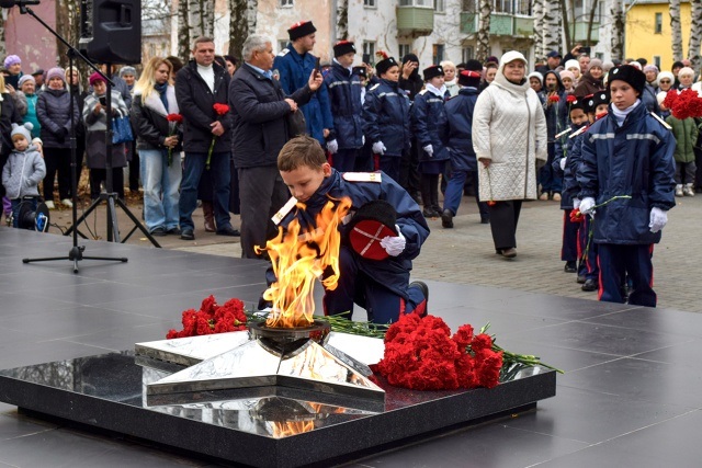 У памятника павшим героям Великой Отечественной войны зажгли вечный огонь - частицу пламени доставили из Рязани, от монумента Победы. К мемориалу возложили цветы.