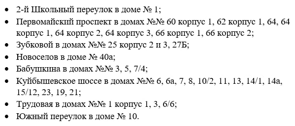 Ресурса не будет с 9:30 до 17:00 по следующим адресам: