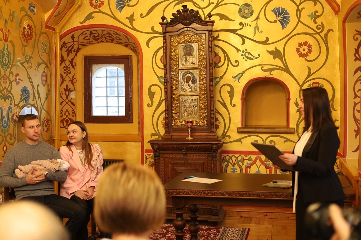 Пару с новорожденной благословил глава епархии, митрополит Рязанский и Михайловский Марк. В память об этом дне он вручил родителям икону. Почетный знак "Родившемуся на Рязанской Земле" передала Мочаловым глава ГУ ЗАГС Рязанской области Елена Сорокина.
