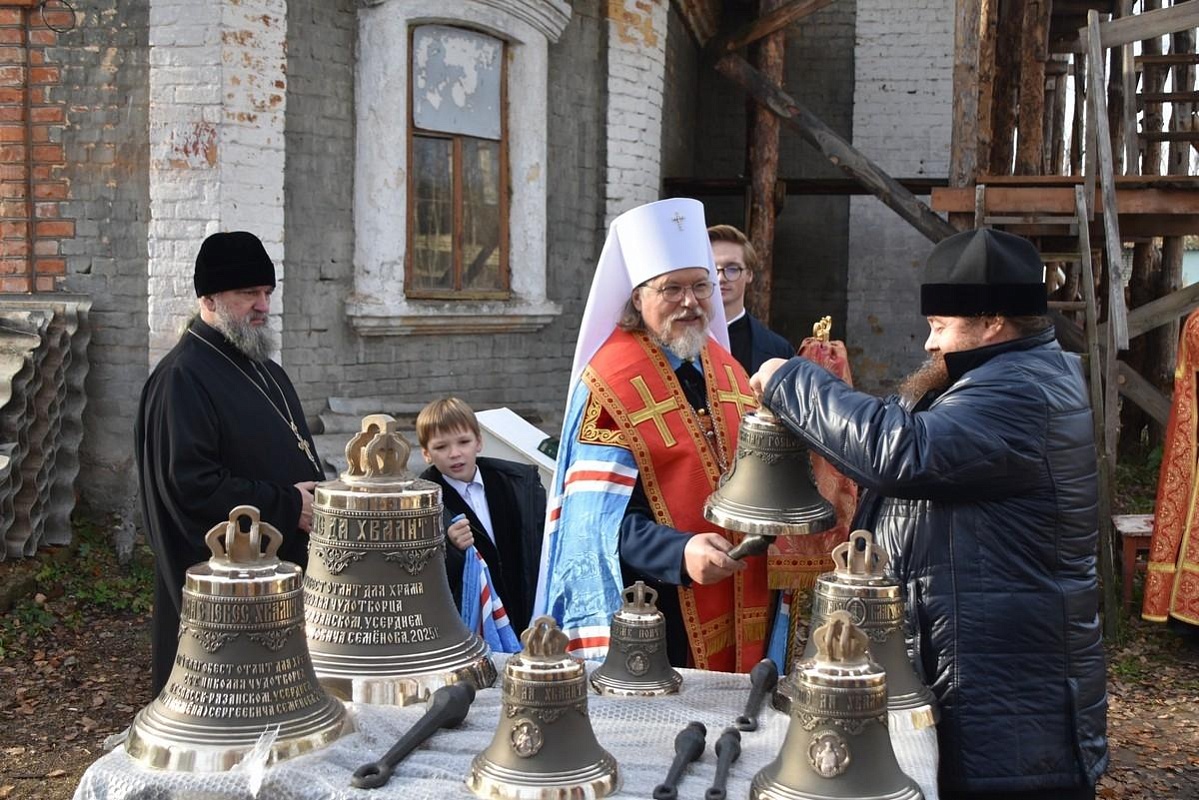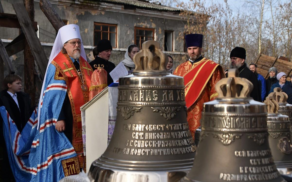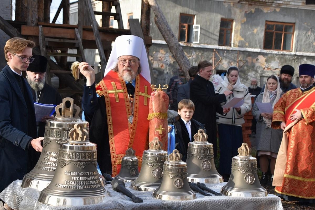 Митрополит Рязанский и Михайловский Марк освятил колокола, купол и крест для восстанавливаемого Никольского храма в Спасске. Об этом сообщается на сайте рязанской епархии.