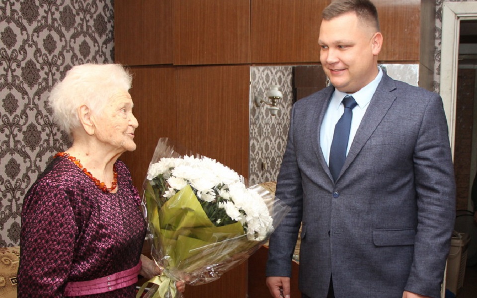 Поздравить ее пришел и.о. мэра Борис Ясинский.