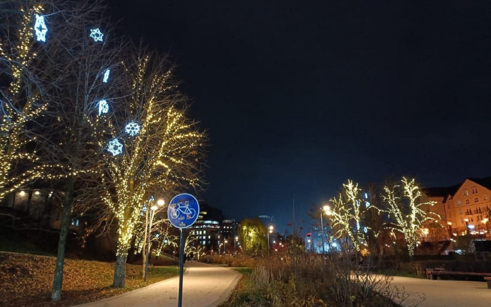 На деревьях на Лыбедском бульваре вновь разместили иллюминацию.