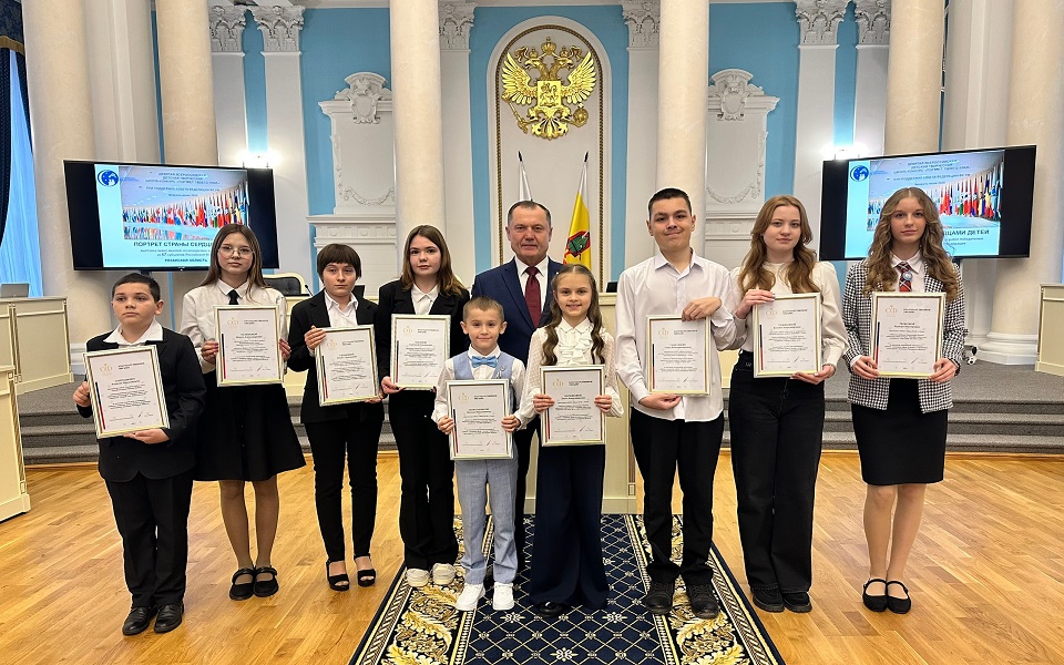 Сенатор от Рязанской области Игорь Мурог наградил школьников, которые вошли в число лучших по результатам конкурса "Портрет твоего края". Торжественная церемония прошла в Рязанской областной Думе.