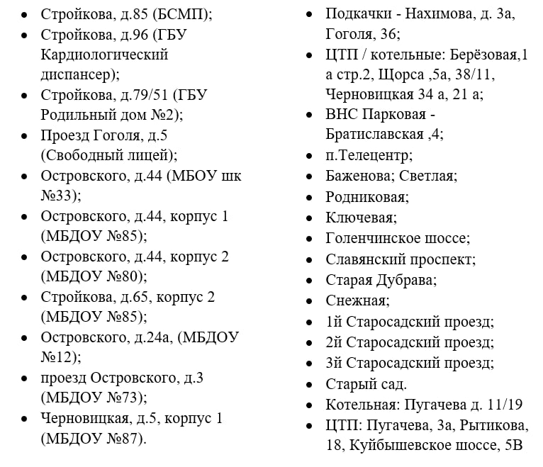 Холодной воды с 8:00 26 ноября до 4:00 27 ноября не будет на следующих улицах: