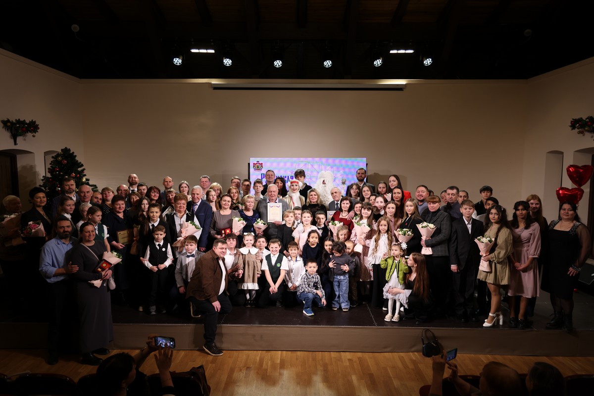 Им вручили премию «Признание», благодарственные грамоты Губернатора и памятный знак «За веру и добродетель». На сцену за наградами поднимались 20 семей.