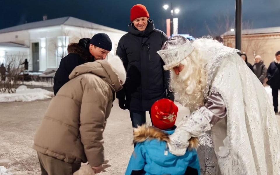 Прогулка была вместе с Дедом Морозом. Губернатор побывал у Рязанского кремля и в Кремлёвском сквере, заглянули на Рязанскую ВДНХ.