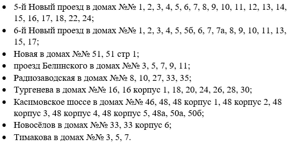 Холодной воды не будет на следующих улицах: