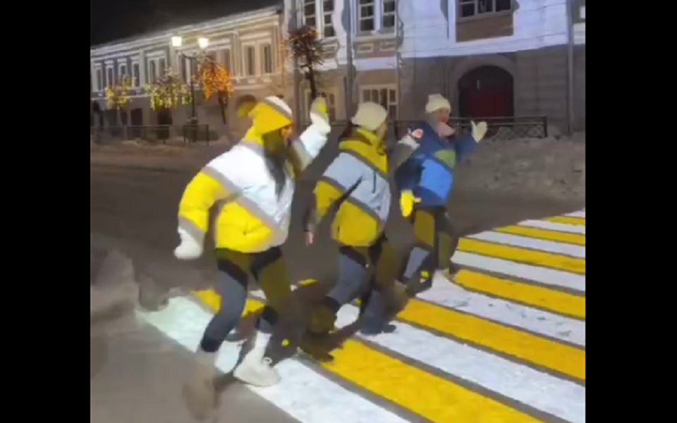 Однако иностранных зрителей больше заинтересовали не задорные девушки, а проекционный пешеходный переход. Они удивляются «световой проекции перехода зебры» и тому, что «пешеходный переход брошен в снег».