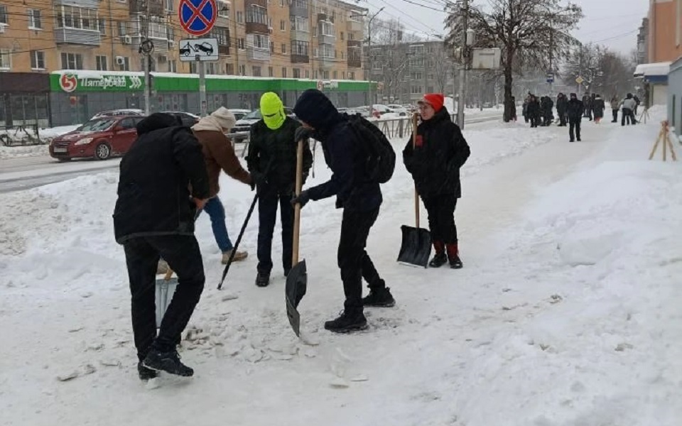 Сейчас основная задача - убрать снег. Студенты и сотрудники расчистили сугробы рядом с вузов.