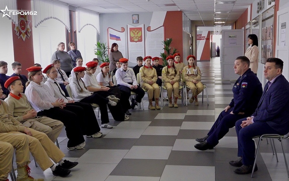 Участник второго потока проекта "Герои62" Олег Сидоров провёл "Урок мужества" для учеников, юнармейцев и активистов детских движений школы №1 Михайлова.