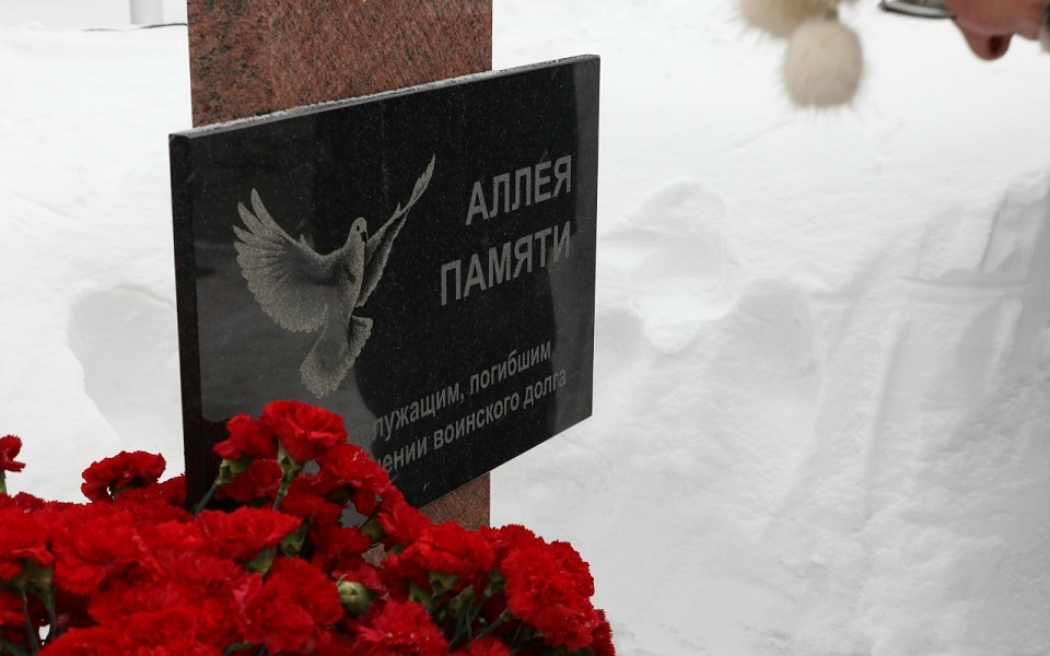 Участники акции почтили минутой молчания память погибших воинов и возложили цветы к стеле на Аллее Памяти.