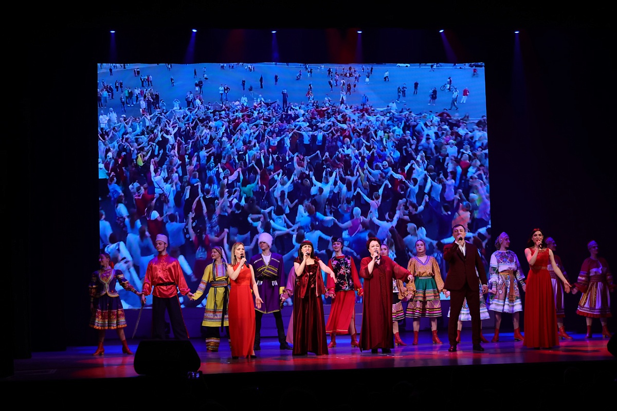 Творческие коллективы города представили зрителям многообразие культурного наследия России. В финале артисты вместе исполнили песню «Миллион голосов» — музыкальный символ единства страны.