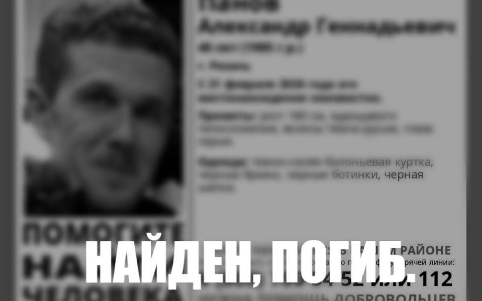 Рязанец пропал 21 февраля. Волонтеров подключили к поискам лишь спустя неделю – 1 марта. В минувший четверг, 5 марта, было обнаружено тело пропавшего.