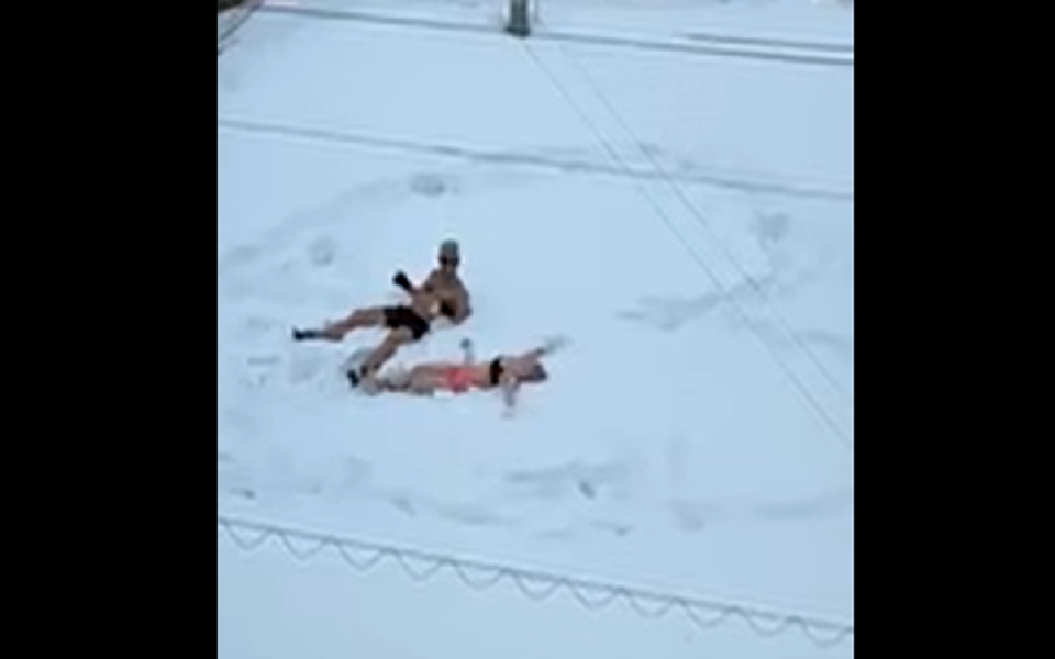 Мужчина надел плавки, девушка облачилась в купальник - и пара, похоже, весело провела время. В программе - "снежный ангел", игра в снежки и догонялки.