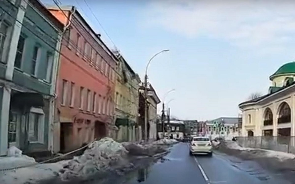 Инцидент случился утром в четверг, 12 марта, у торговых рядов на улице Краснорядской. Глыба льда упала на тротуар и проезжую часть.