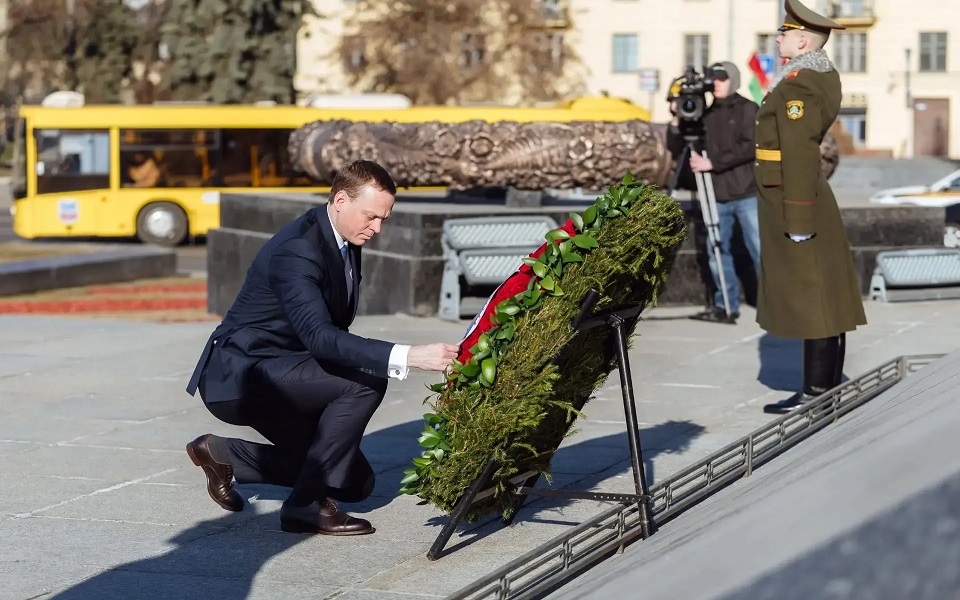 Губернатор Павел Малков проводит рабочий визит в Республику Беларусь. Глава Рязанской области уже успел встретиться и обсудить перспективы сотрудничества с президентом Александром Лукашенко; провел еще ряд переговоров. Еще одним из пунктов программы 16 марта стало посещение мемориала Победы в Минске.