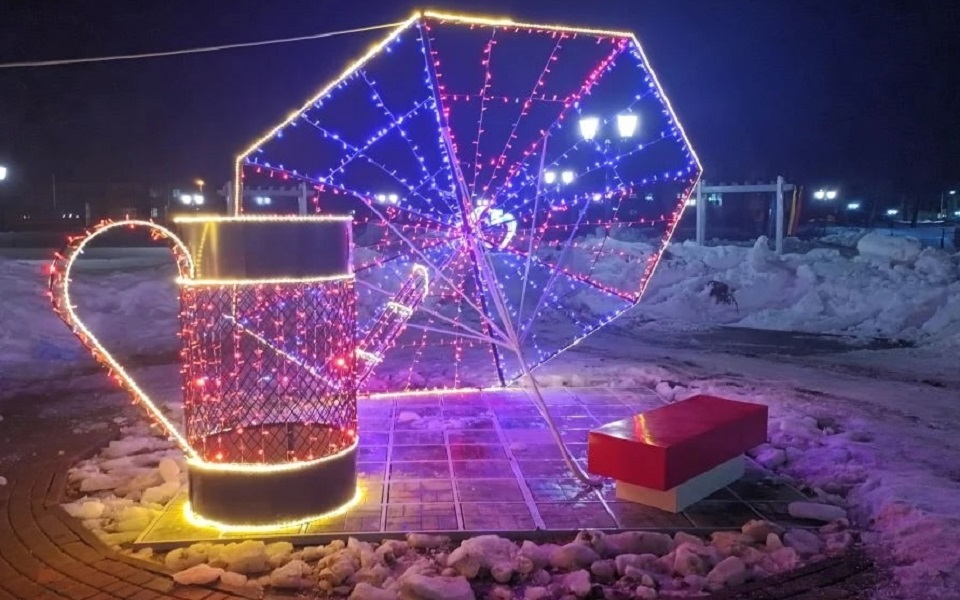 В преддверии юбилея в недавно благоустроенном парке установили малые архитектурные формы: инсталляцию «Я люблю Елатьму» и сборно-разборную конструкцию из светодиодного зонтика, кружки и лавочки.