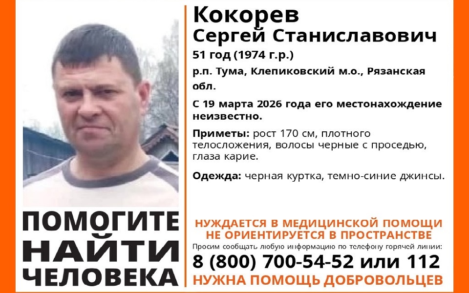 В Туме Клепиковского района пропал 51-летний мужчина. Об этом сообщили волонтеры поисково-спасательного отряда «ЛизаАлерт».