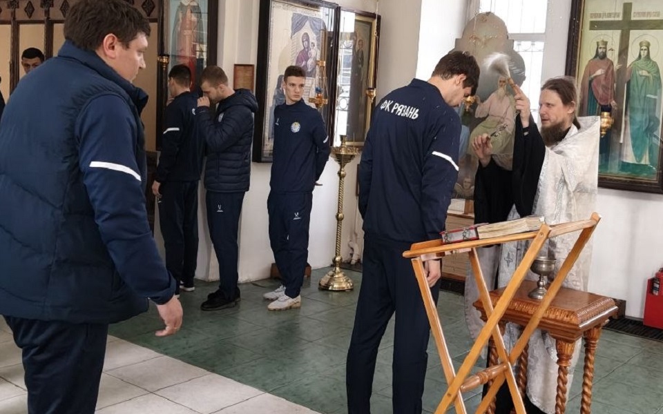 Главный тренер, сотрудники и члены в команды футбольного клуба «Рязань» приняли участие в молебне перед началом доброго дела.