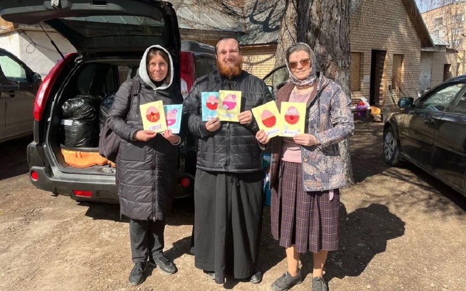Прихожане Вознесенского храма собрали подарки к Пасхе для детей, живущих в Горловке (ДНР). Они приготовили одежду, игрушки, сласти, открытки, куличи, конфеты, а также подгузники. Активную роль в сборе подарков приняли дети из воскресной школы храма.
