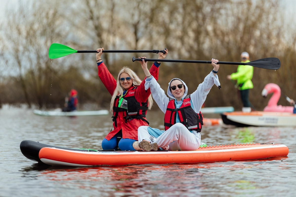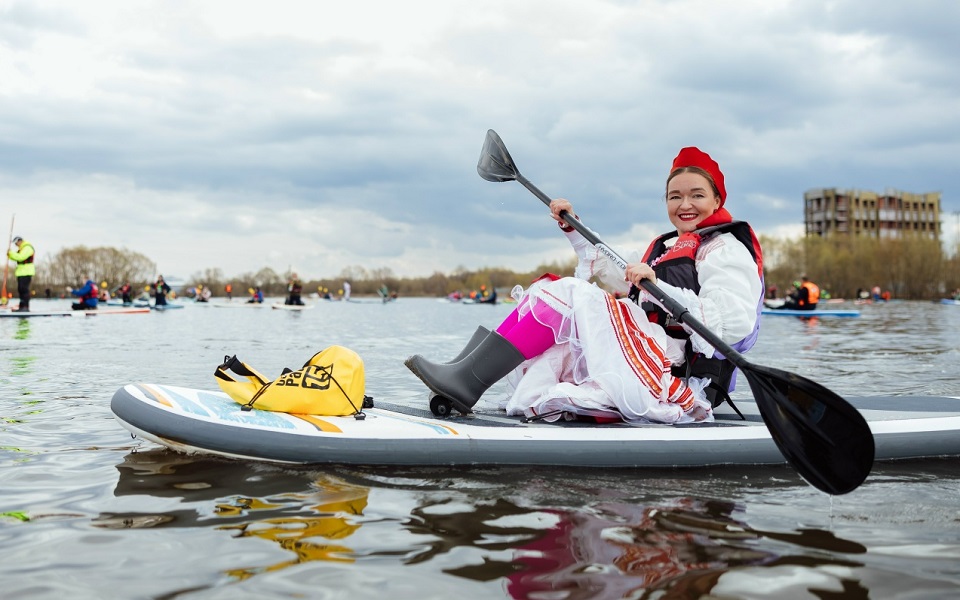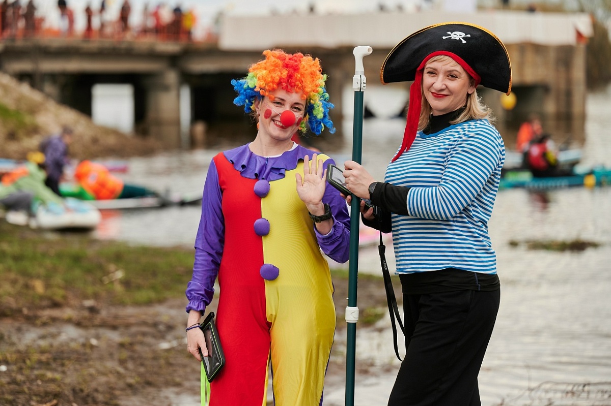 Событие получилось впечатляющим. В акватории затона на сапах можно было увидеть участников в ярких образах: за весла взялись русские красавицы в кокошниках, пчеловоды и пираты. Дополняли вид розовые фламинго - надувные птицы составляли сапбордистам компанию на воде.