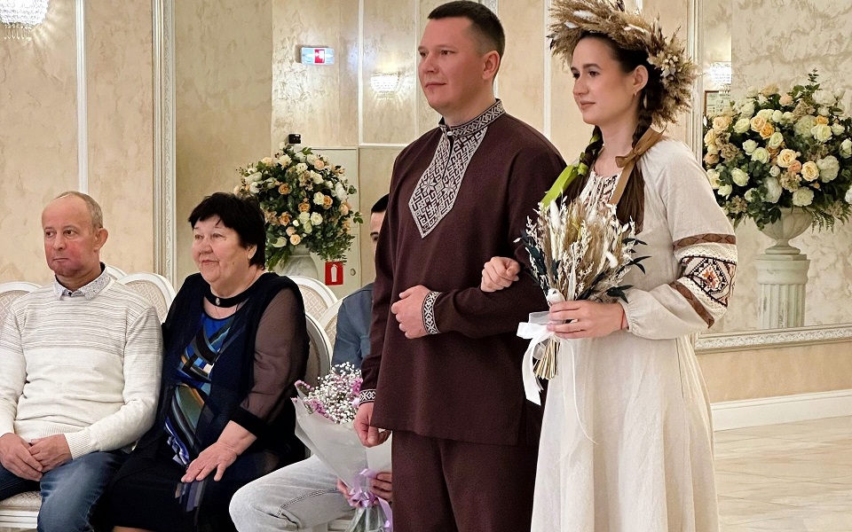Рязанская пара зарегистрировала свой брак на Красную горку – молодожены пришли на церемонию в народных костюмах. Об этом сообщили в пресс-службе «Сервис-ЗАГС».