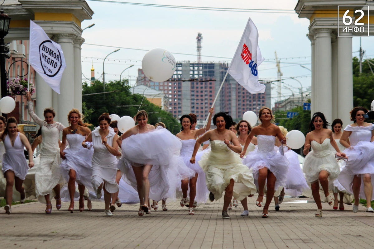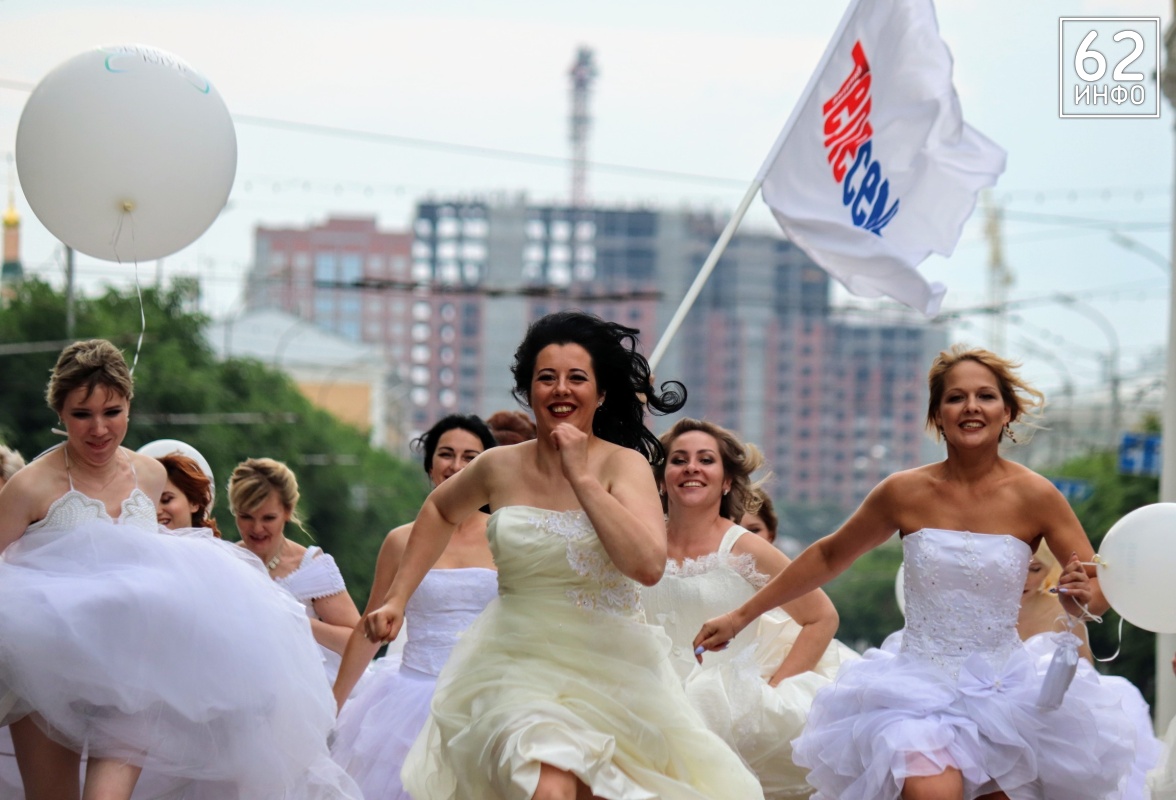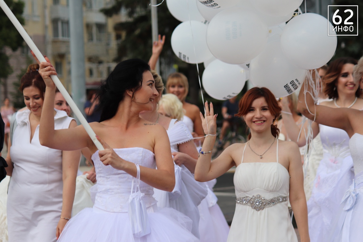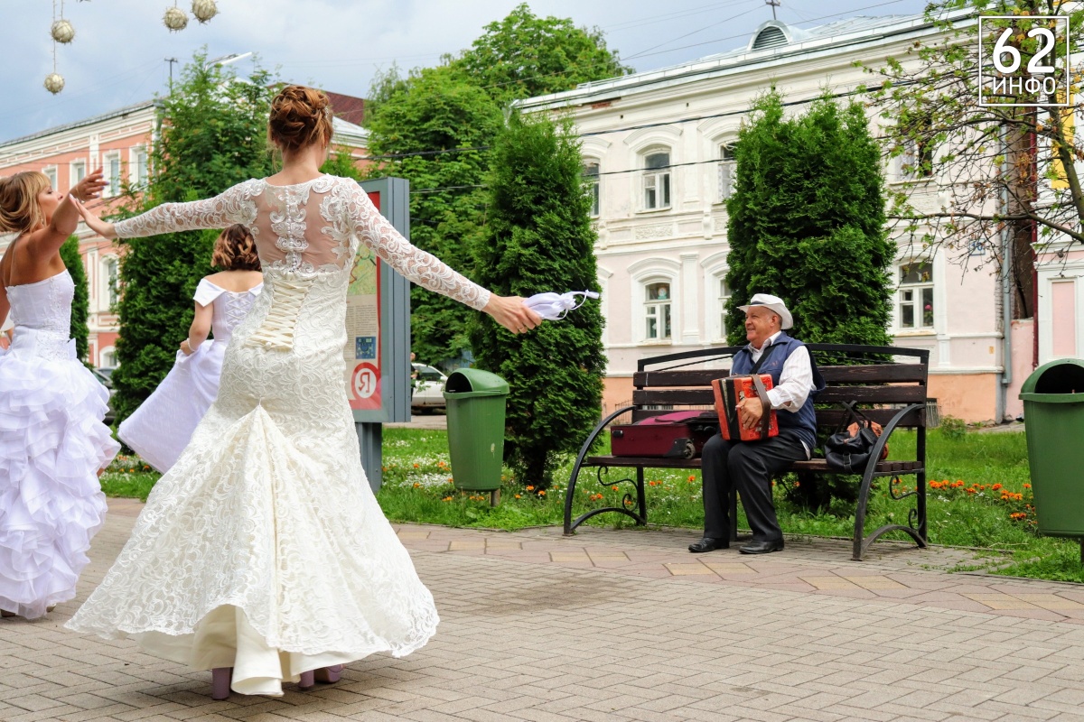 31 мая в Рязани прошла акция «Сбежавшие невесты». Почти 30 девушек провели вечер пятницы в белых свадебных платьях. Семейное положение – не имеет значения.