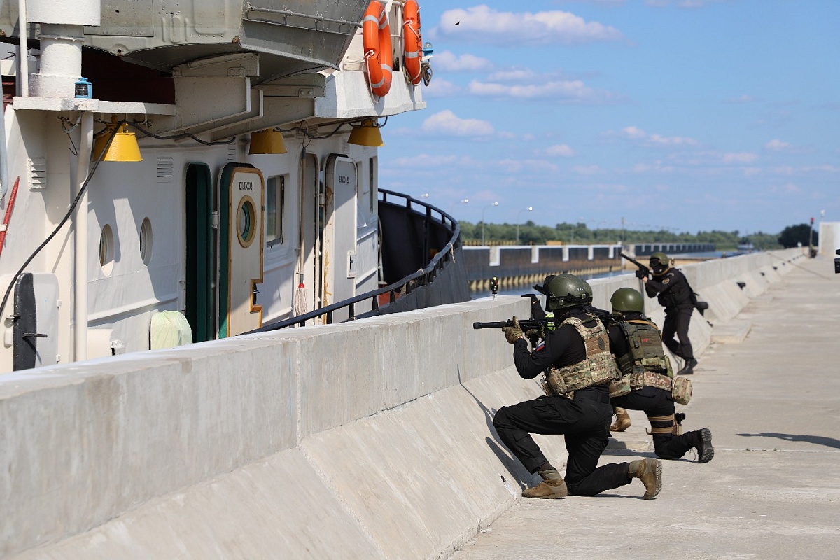 Когда теплоход проходил через гидроузел «Кузьминск», спецназ пошёл на штурм и освободил заложников. Затем сотрудники силовых ведомств отработали первую помощь пострадавшим, ликвидиацию загорание и разминирование объекта.