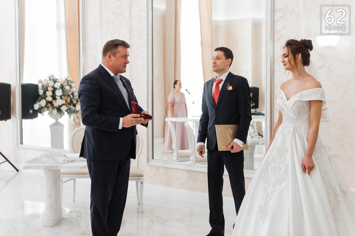 Первыми зарегистрировали свой брак во Дворце торжеств Анастасия и Михаил. Свидетельство им вручил Николай Любимов.