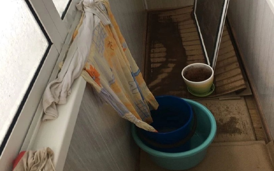 По словам владельцев жилья, в последние дни проблема обострилась — снега много, талая вода стекает по балконам и превращается в глыбы льда. На самих балконах приходится то и дело менять вёдра.