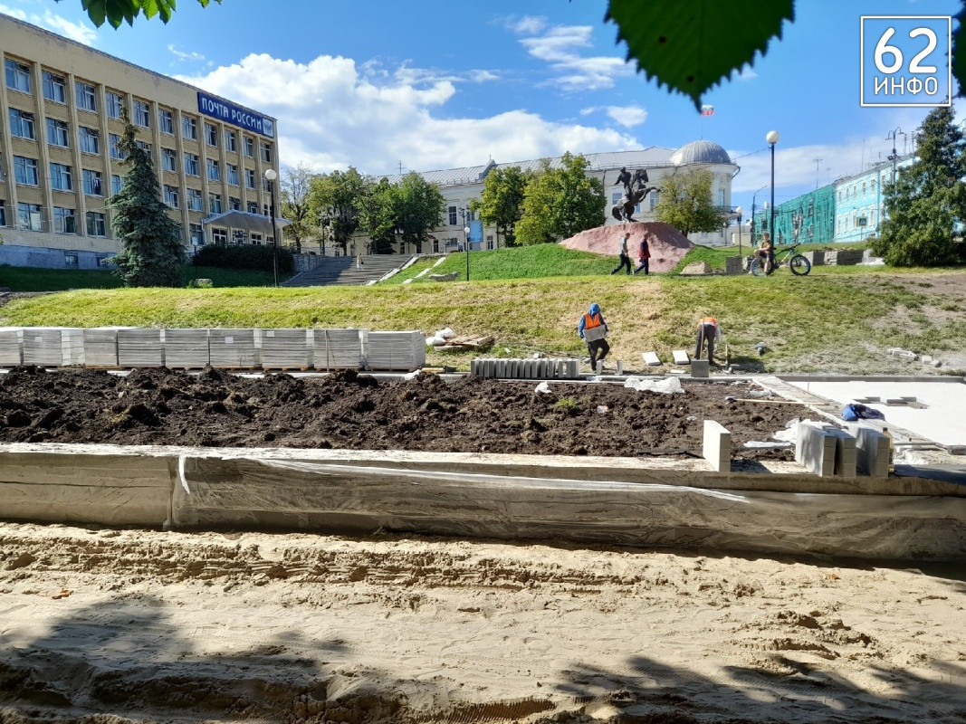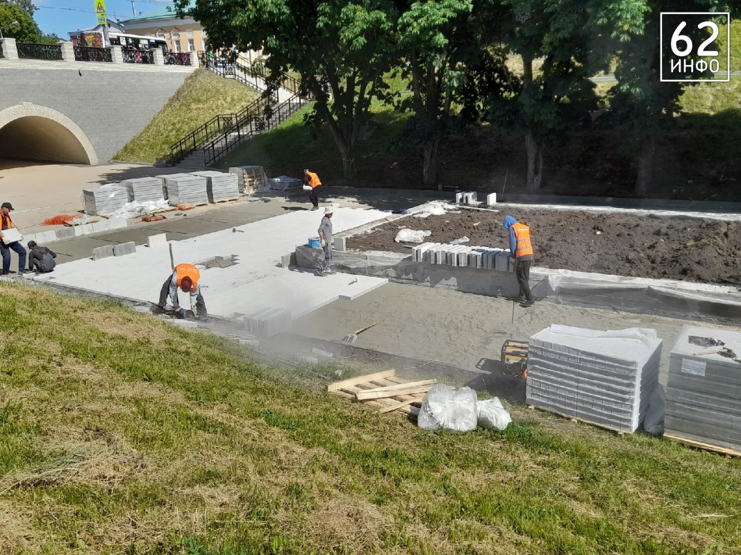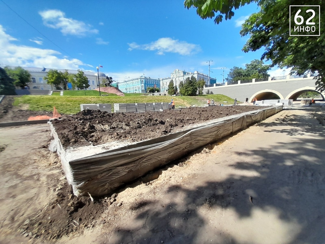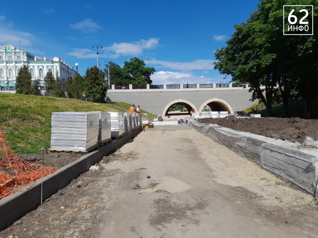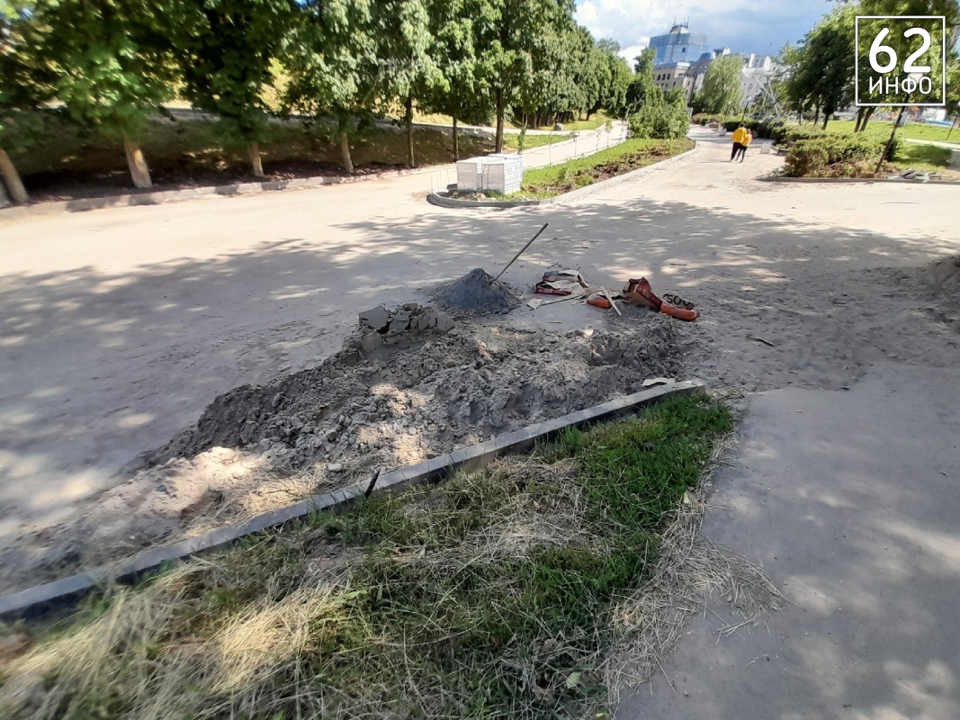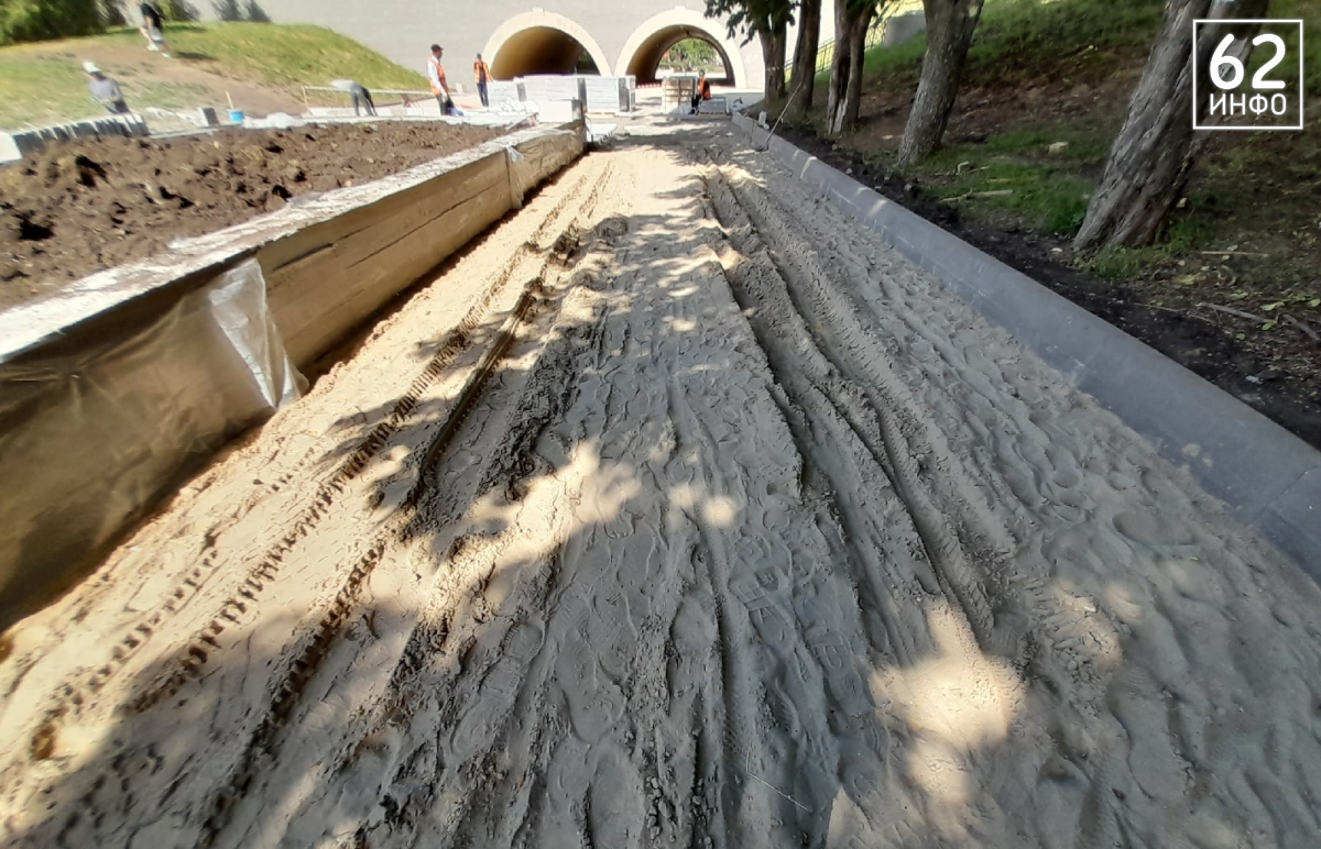 Поскольку территория огорожена, рязанцам приходится идти до арки либо по песку, либо по склону. Ни один из способов нельзя назвать удобным. При этом пешеходам приходится обходить мусор, оставленный рабочими.